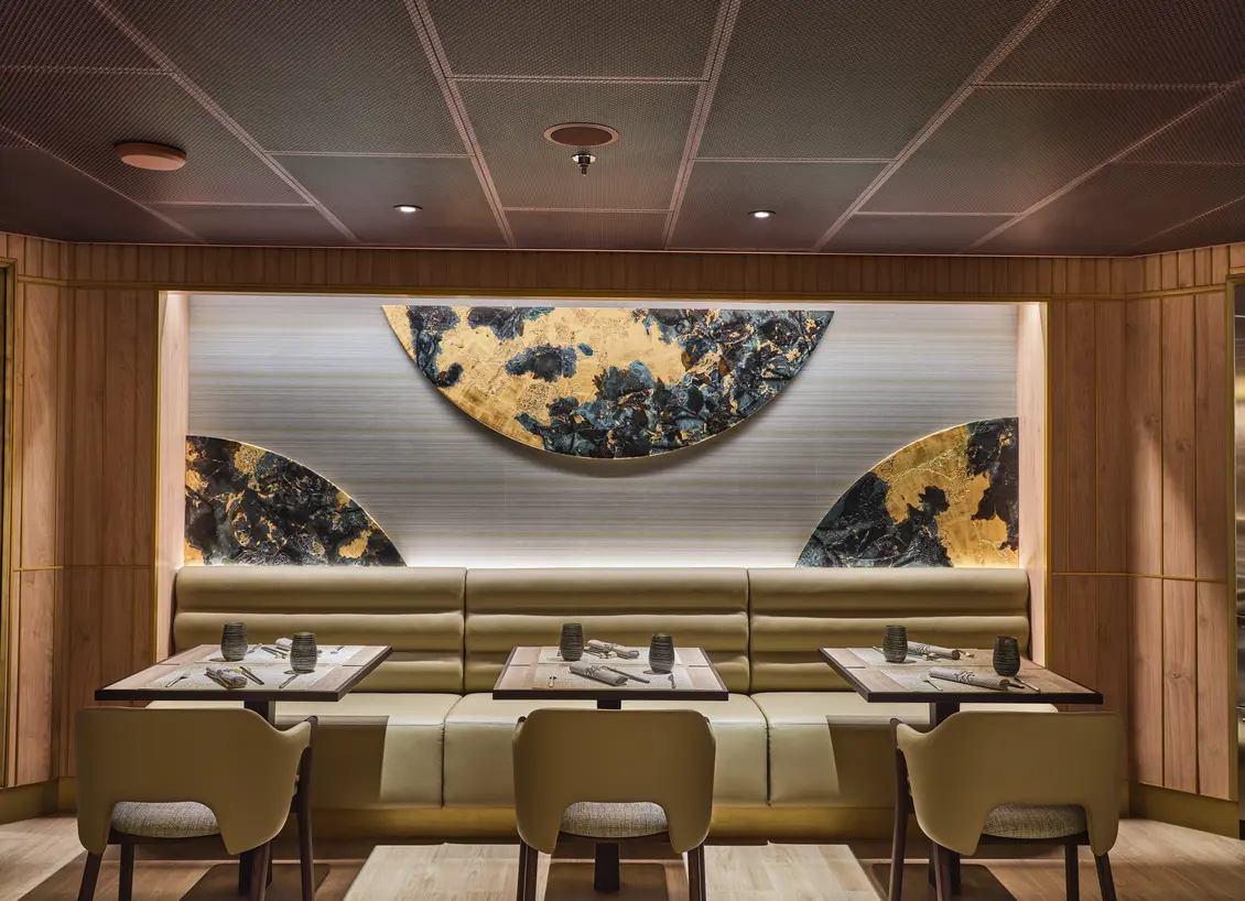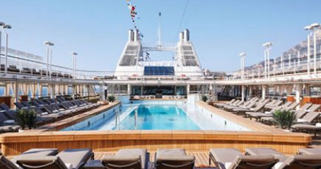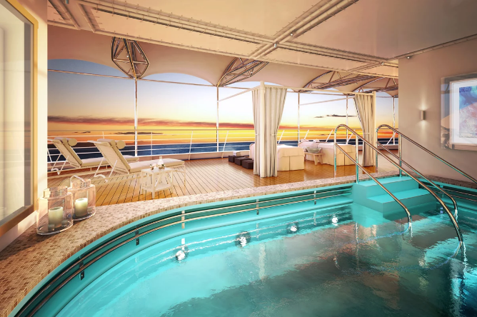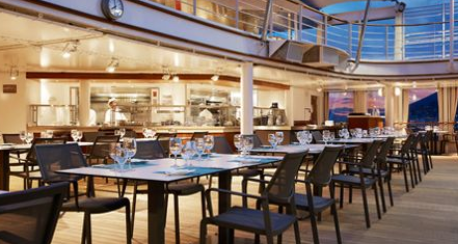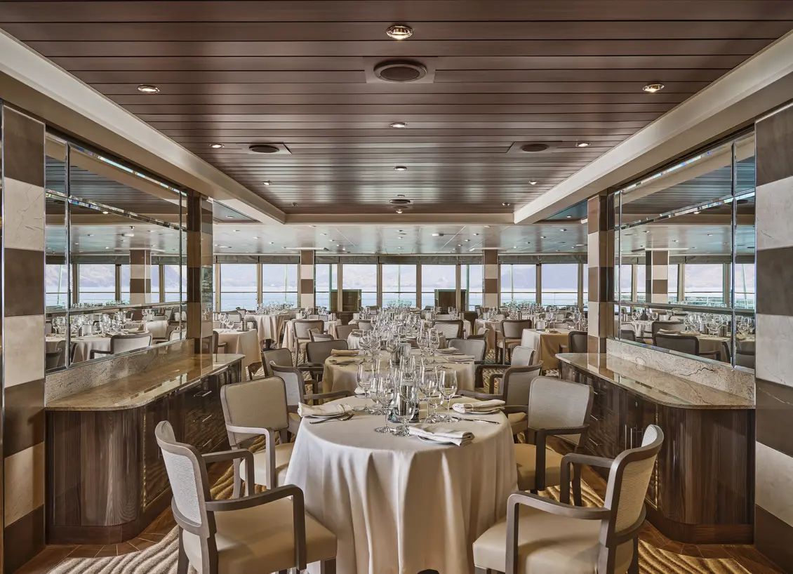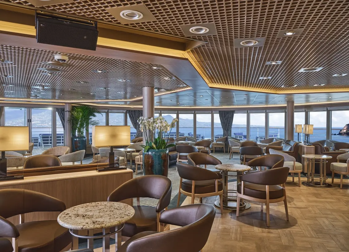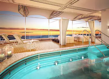 The Vista Suite provides generous living space for all travellers. The Vista Suite offers all the c ... omfort and attention to detail that you can expect aboard. A generous expanse of interior comforts — elegant décor, stunning marble bathroom and ample seating area, make this a cosy home away from home. The seating area of the Vista Suite has plenty of room to relax, while large picture windows frame panoramic ocean views, the perfect backdrop for breakfast in bed! 3 Wheelchair Accessible Suites (407, 409, 417). Sitting area. Twin beds or queen-sized bed. Marble bathroom with vanity, full-sized bath, separate shower. Wheelchair accessible suite has a marble bathroom with vanity and separate shower (no full-sized bath). Walk-in wardrobe with personal safe; wheelchair accessible suites fitted with cupboards and wardrobe with personal safe. Writing desk. One 40” / 102 cm flat-screen HD TV. Interactive Media Library. Unlimited Standard Wifi.