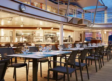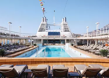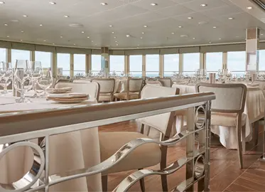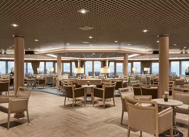 The Vista Suite provides generous living space for all travellers. The Vista Suite offers all the c ... omfort and attention to detail that you can expect aboard. A generous expanse of interior comforts — elegant décor, stunning marble bathroom and ample seating area, make this a cosy home away from home. The seating area of the Vista Suite has plenty of room to relax, while large picture windows frame panoramic ocean views, the perfect backdrop for breakfast in bed! 3 Wheelchair Accessible Suites (407, 409, 417) Sitting area. Twin beds or queen-sized bed. Marble bathroom with vanity, full-sized bath, separate shower. Wheelchair accessible suite has a marble bathroom with vanity and separate shower (no full-sized bath). A choice of pillows. Walk-in wardrobe with personal safe. Writing desk. Two 42” / 106 cm flat-screen HD TVs. Interactive Media Library. Unlimited Standard Wifi.