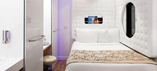 Perfect for the family, these staterooms accommodate four guests and feature two lower beds that co ... nvert into a queen-size bed and two bunk beds, plus a picture window to admire the incredible view together. And you’re close to the theatre, great shopping and delicious dining.