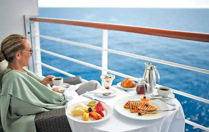 Custom-crafted furnishings, exotic stone finishes, supple upholstered headboards and chic lighting ... are just a few of the enhancements within these 216-square-foot staterooms that also boast our most popular luxury – a private teak veranda for watching the ever-changing panoramas. Conveniences within each stateroom include a vanity desk, refrigerated mini-bar, breakfast table and spacious seating area. Veranda Stateroom Amenities Ultra Tranquility Bed, an Oceania Cruises Exclusive Private teak veranda Twice daily maid service Complimentary 24-hour room service Signature Belgian chocolates with nightly turndown service Plush cotton towels Thick cotton robes and slippers Bulgari amenities Handheld hair dryer Wireless Internet access and cellular service Writing desk and stationary Flat-screen television with live satellite news and programming DVD player with extensive 24-hour room service menu Security safe