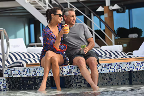 Named for their sweeping views over the ship’s bow, the four Vista Suites each sprawl over 78 ... 6 square feet. Every imaginable comfort is here, including a second bathroom for guests as well as a master bathroom newly redesigned in onyx and granite with a luxurious new shower. Relax on the private teak veranda, listen to music in enhanced surround sound or watch a movie on one of two flat-screen televisions. Access wireless Internet on a complimentary iPad. Vista Suite Privileges In addition to Suite & Stateroom Amenities Free laundry service – up to 3 bags per stateroom+ Priority 11 am ship embarkation with priority luggage delivery 24-hour Butler service Complimentary in-suite bar setup with 6 full-size bottles of premium spirits and wines from our suite beverage menu Complimentary welcome bottle of Champagne Fresh fruit basket replenished daily Priority online specialty restaurant reservations Unlimited access to the Aquamar Spa Terrace Complimentary iPad Bulgari gift set and variety of amenities Choice of daily printed newspaper Complimentary Oceania Cruises logo tote bag and personalized stationery Cashmere lap blankets, perfect for relaxing on your veranda Complimentary shoe shine service Complimentary pressing of garments upon embarkation++ Choice of pillow from a luxurious selection +Up to 20 garments per laundry bag. 3 day turnaround time and laundry will not be accepted 3 days prior to disembarkation. ++Certain limitations apply All Suites and Staterooms are Smoke-Free