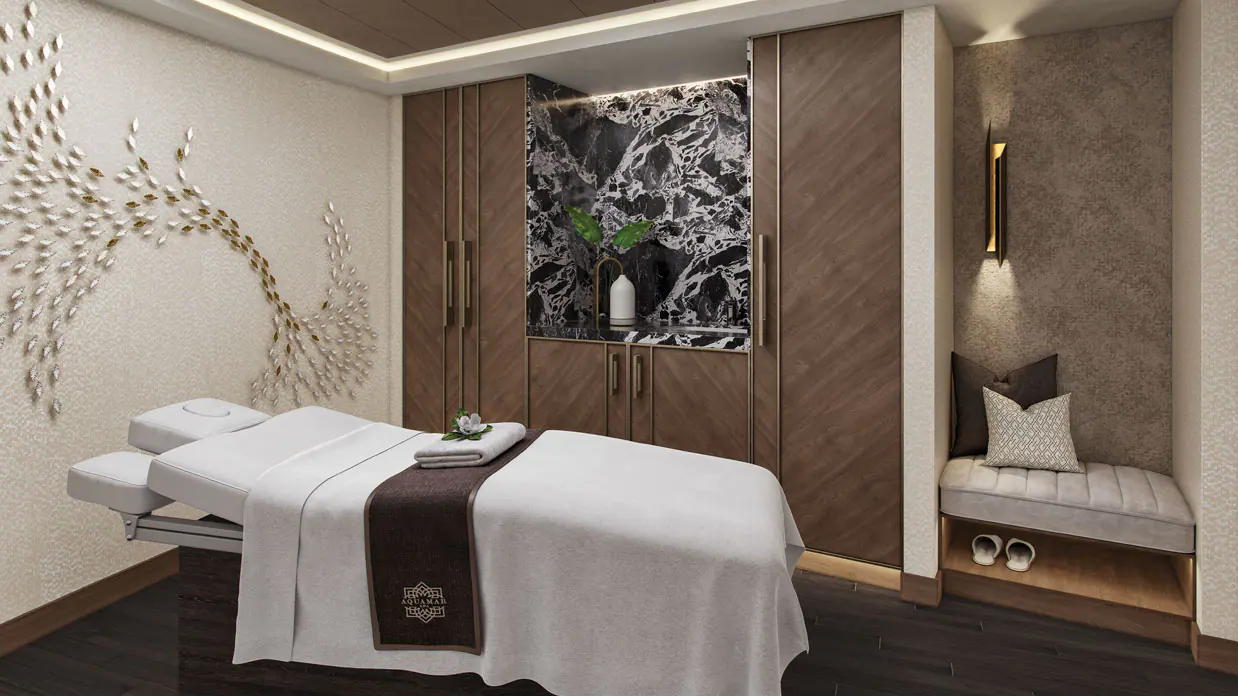 An overabundance of space and elevated levels of luxury define the Penthouse Suite experience. Inge ... nious design and tony furnishings punctuate the space, which is resplendent in rich upholstery, fine leathers and stunning works of art. Measuring 440 square feet, Penthouse Suites feature the added luxuries of a walk-in closet, an oversized bath with dual vanities and of course, a large private veranda overlooking the sea. Penthouse guests also have unlimited use of the sublime Aquamar Spa Terrace along with Butler service and keycard access to the suites-only Executive Lounge with a dedicated Concierge. Penthouse Suite Privileges In addition to Stateroom Amenities Complimentary laundry service – up to 3 bags per stateroom+ Priority noon ship embarkation with priority luggage delivery Exclusive card-only access to private Executive Lounge staffed by a dedicated Concierge featuring complimentary soft drinks, coffees and snacks throughout the day 24-hour Butler service Complimentary welcome bottle of Champagne Priority online specialty restaurant reservations Unlimited access to Aquamar Spa Terrace iPad upon request for your enjoyment on board Cashmere lap blankets Complimentary shoeshine service Complimentary pressing of garments upon embarkation++