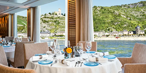 Suite size: 275 sq ft River-view suite with full-size veranda off the spacious, separate sitting r ... oom & floor-to-ceiling sliding glass door, known as a French balcony, in the sleeping quarters Hotel-style bed 79 in x 63 in (with optional twin-bed configuration); luxury linens & pillows Free Wi-Fi (connection speed may vary) Two 40″ flat-screen Sony TVs with infotainment system featuring Movies On Demand, plus CNBC, CNN, FOX, National Geographic & more 110/220 volt outlets & USB ports Telephone, safe, refrigerator, hair dryer & individual climate control Large private bathroom with spacious glass-enclosed shower, heated bathroom floor & anti-fog mirror Premium Freyja toiletries; plush robes & slippers Bottled water replenished daily Stateroom steward & twice-daily housekeeping Space under bed for storing suitcases Roomy wardrobe with wooden hangers Early check-in (no later than 12 PM) Complimentary laundry & shoe shine services Welcome champagne; mini-bar with wine, beer & soft drinks (replenished daily); daily fruit plate Binoculars