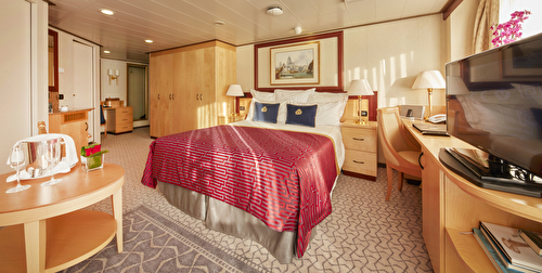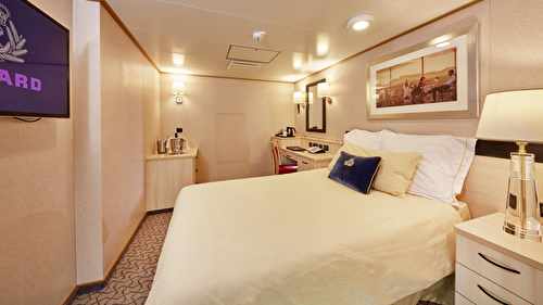 Approximately 180 sq. ft. Awaken each day to glorious natural daylight and a window overlooking th ... e ocean. Each Britannia Oceanview stateroom includes: A king-sized bed, lounge area and desk with stationery.Satellite TV, tea & coffee making facilities and a mini-bar.An invigorating shower and complimentary Penhaligon’s toiletries.Complimentary robe and slippers for everyone in your party.Nightly turndown service, including a chocolate on your pillow.Sparkling wine to welcome you on board.