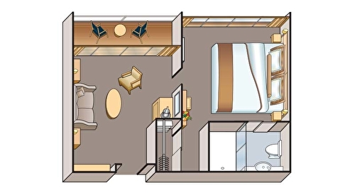 Suite size: 302 sq ft River-view suite with full-size veranda off the spacious, separate sitting r ... oom & floor-to-ceiling sliding glass door, known as a French balcony, in the sleeping quarters Hotel-style bed 79 in x 63 in (with optional twin-bed configuration); luxury linens & pillows Free Wi-Fi (connection speed may vary) Two 40″ flat-screen Sony TVs with infotainment system featuring Movies On Demand, plus CNBC, CNN, National Geographic & more 110/220 volt outlets & USB ports Telephone, safe, refrigerator, hair dryer & individual climate control Large private bathroom with spacious glass-enclosed shower Premium Freyja toiletries; plush robes & slippers Bottled water replenished daily Stateroom steward & twice-daily housekeeping Space under bed for storing suitcases Roomy wardrobe with wooden hangers Early check-in (no later than 12 PM) Complimentary Viking Air Plus, laundry & shoe shine services Welcome champagne; mini-bar with wine, beer & soft drinks (replenished daily); daily fruit plate Binoculars