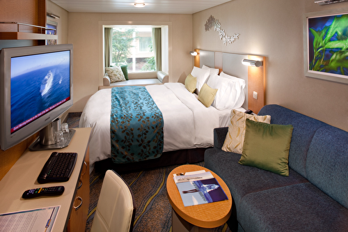 Experience a spectacular view for a memorable vacation. ( Up to 2 guests ) Beds Two twin beds t ... hat convert to a Royal King bed Size Stateroom: 182 sq. ft. Balcony: 50 sq. ft.