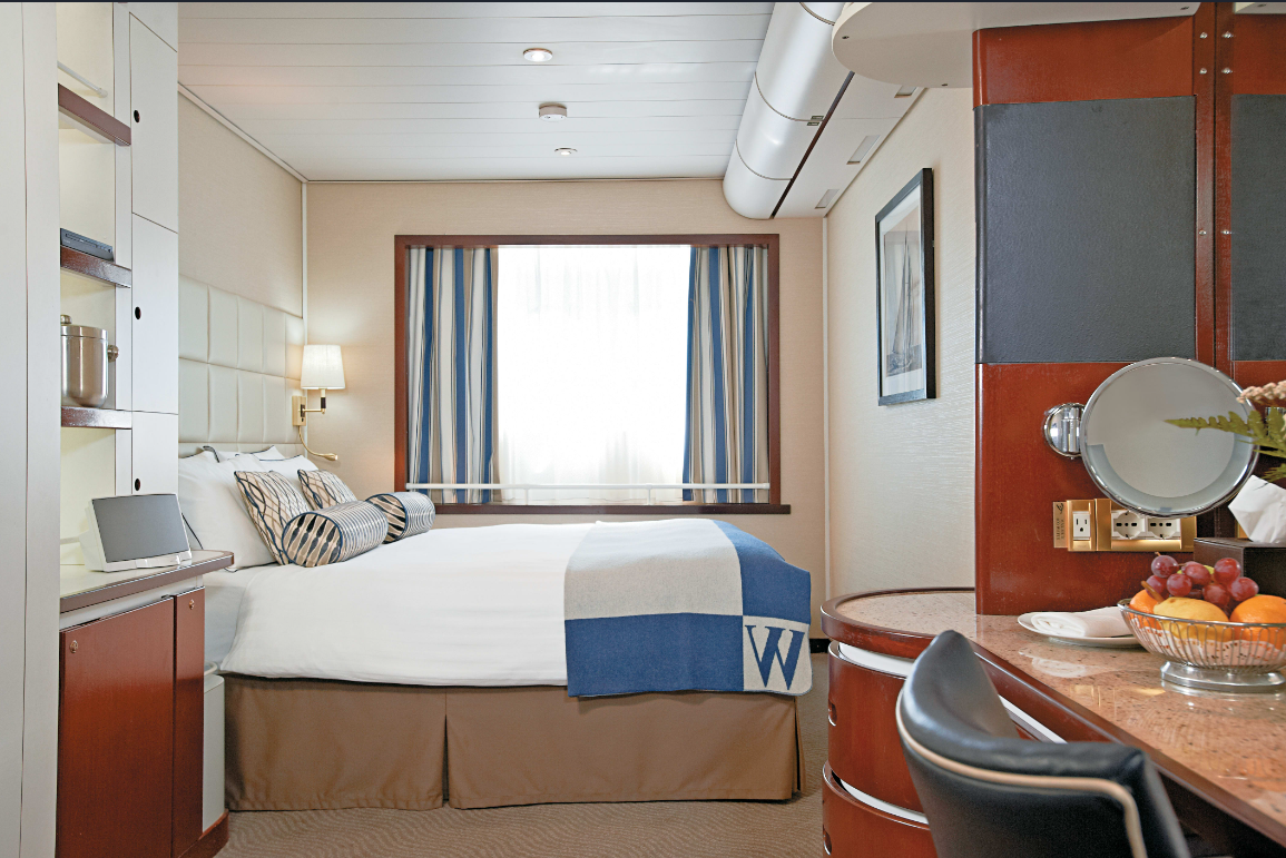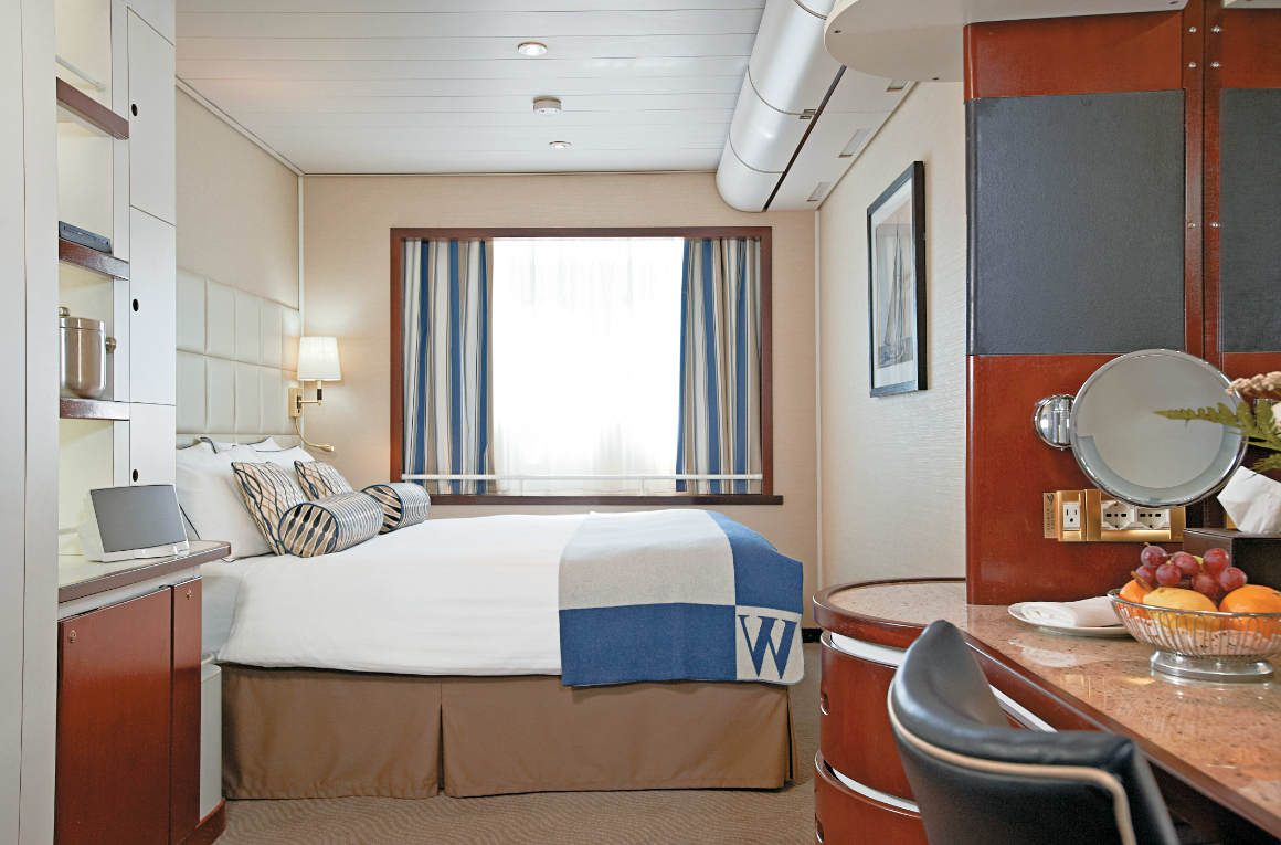 Stylish comfort and ocean views welcome you in 188 square feet of beautifully designed comfort. You ... r queen bed (which can be separated as twins if you prefer) is swathed in luxurious Egyptian cotton linens. Before or after you enjoy an invigorating massage shower with soothing L’Occitane® bath products, wrap up in your waffle-weave robe, have a snack from the fresh fruit bowl, or simply stretch out and smell the flowers.