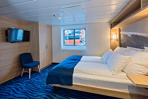 This mini suite for up to four people on lower deck have a double bed, one sofabed and one single b ... ed, TV, window, and bathroom with shower/WC.
