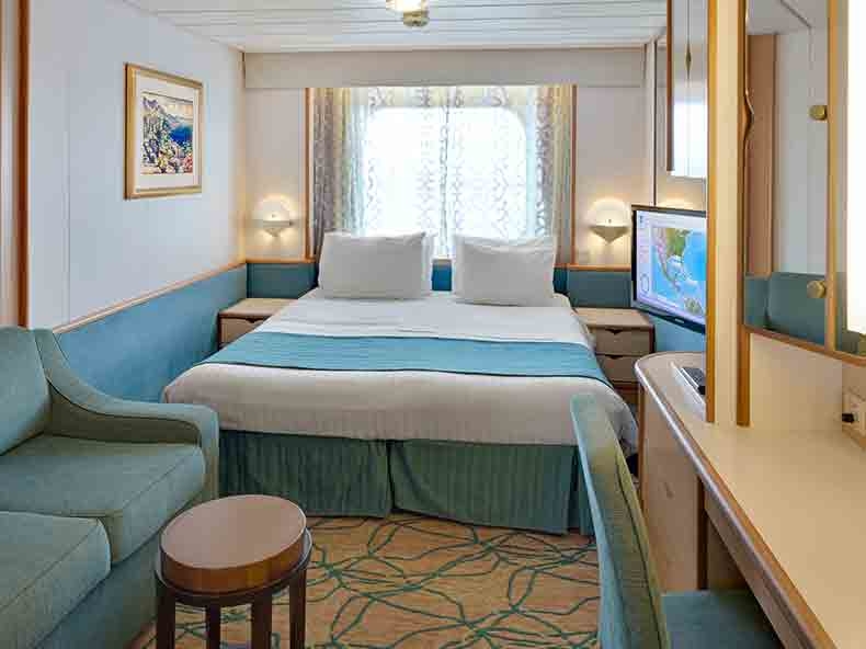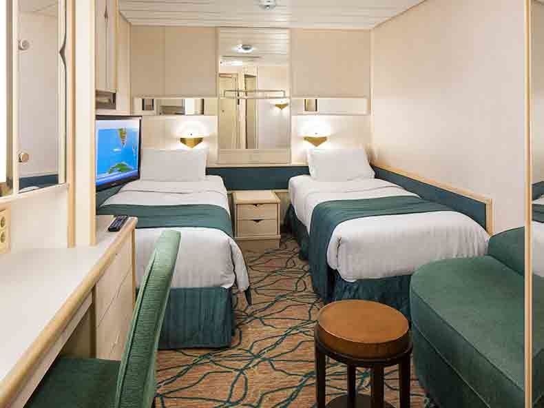 All staterooms and suites come complete with private bathroom, vanity area, hair-dryer, closed-circ ... uit TV, radio and phone. Two twin beds that convert to Royal King and private bathroom. Stateroom: 146 sq. ft.