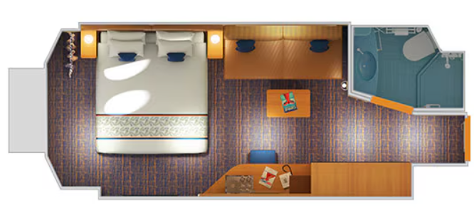 Two twin beds (convert to king). Sofa and coffee table. Desk and seat. Full bathroom with shower. A ... mple closet space. Two porthole windows. Dedicated room steward Soft, cozy linens (Carnival Comfort Collection) In-room safe for valuables Plenty of closet and drawer space Television Stateroom climate control Bathrobes upon request