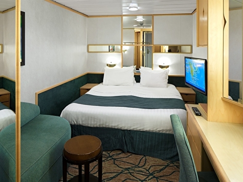 Two twin beds that convert to Royal King and bathroom. Stateroom: 136 sq. ft.