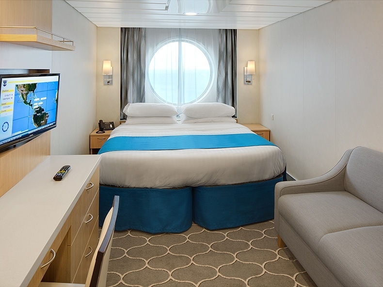 All staterooms and suites come complete with bathroom, vanity area, hair-dryer, TV and phone. Two t ... win beds that convert to a Royal King bed. Two Pullman beds in staterooms with up to 4 guests. Stateroom: 161 sq. ft.